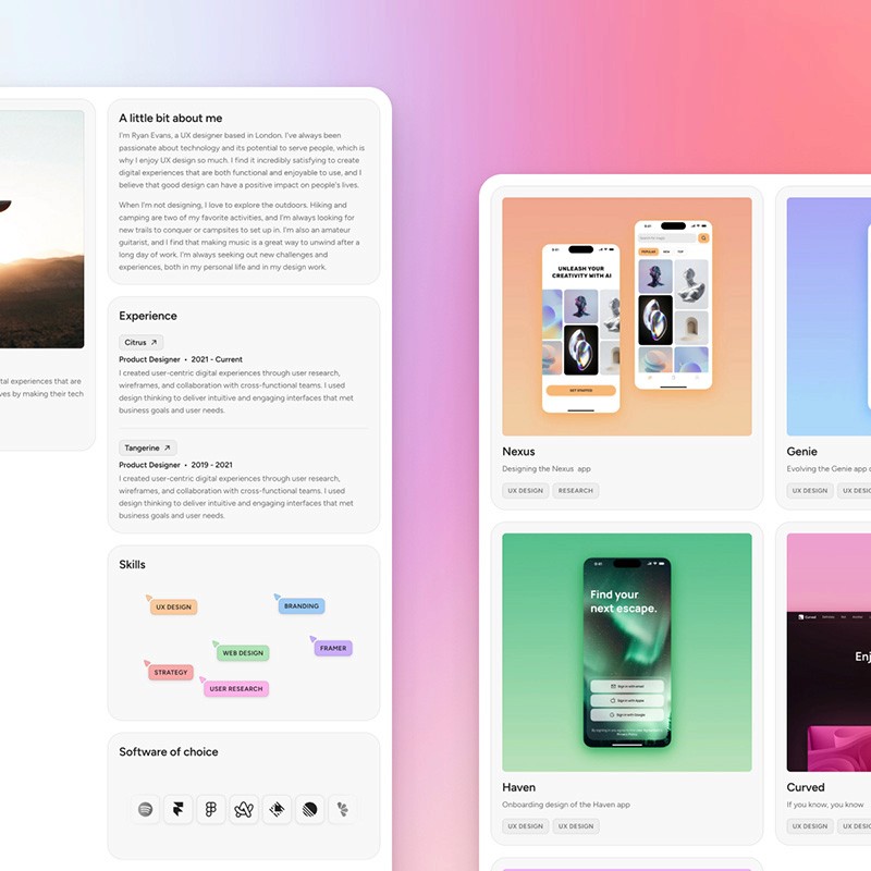 Showcase your creative work in style with the Prisma portfolio template. Featuring a sleek and highly customizable design, Prisma is ideal for designers, freelancers, and creatives. Its modern and minimalist layout provides the perfect canvas for your work, allowing you to create a portfolio that truly stands out.